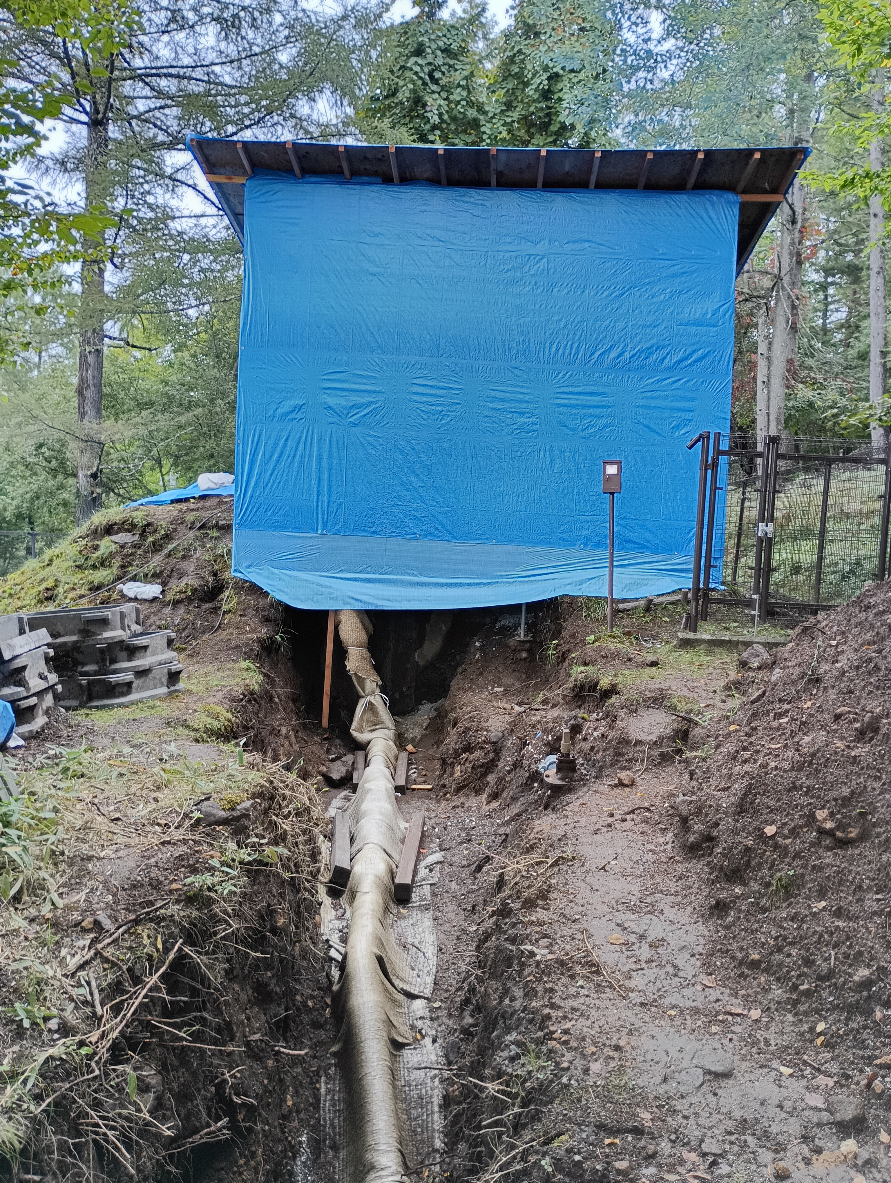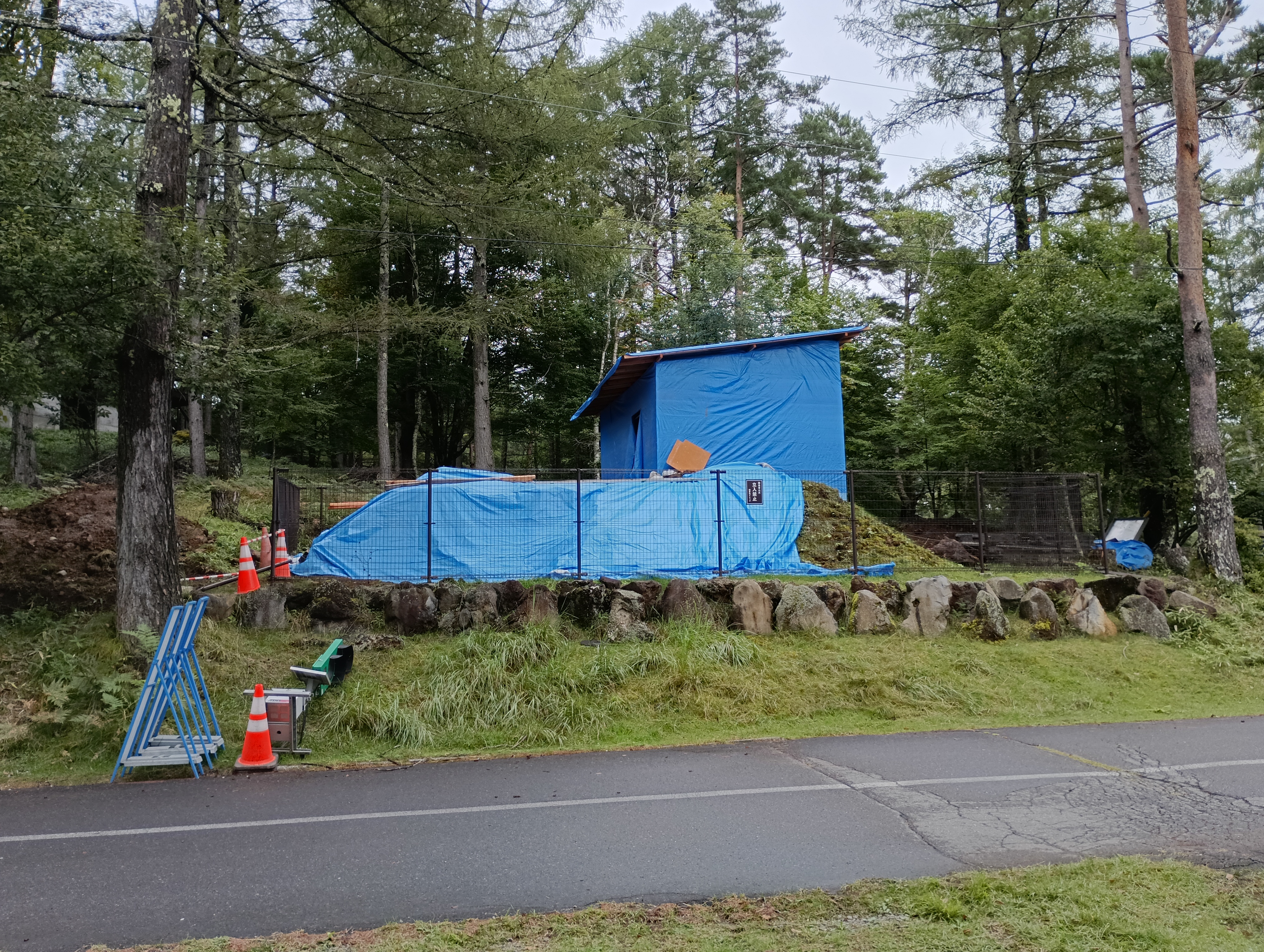 現在、白樺平343南側隣にある調整池の改修工事を実施しています。