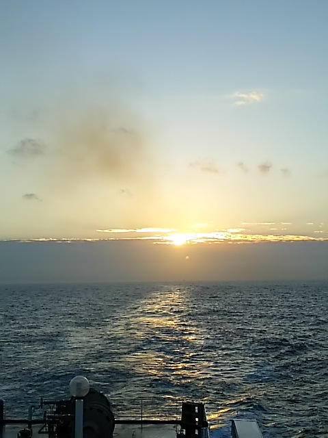 この日はあいにく水平線上に雲があり雲の切れ目からの日の出でした